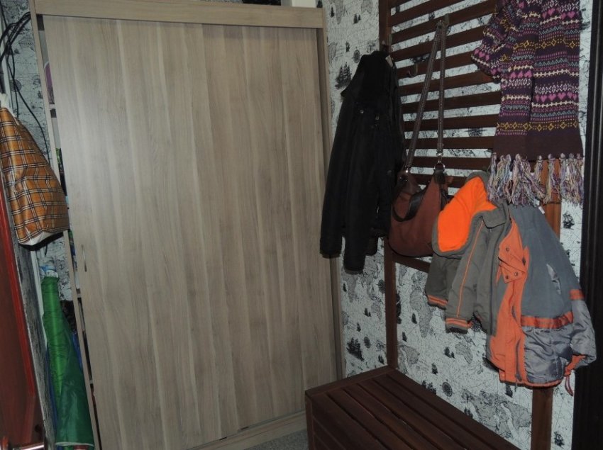 Появилась прихожая со шкафом, вешалкой и сундуком, чтобы сидеть и удобно обувать ребёнка.