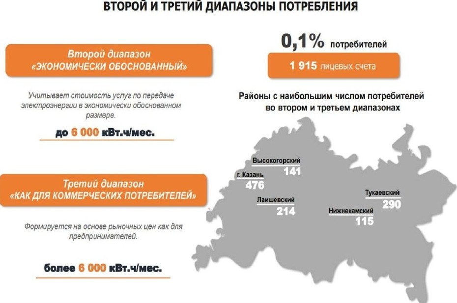 По словам главы «Татэнергосбыта», в республике было проведено комплексное исследование энергопотребления жителями Татарстана, и оно показало, что месячный расход электроэнергии у 99,9% граждан не превышает 3900 кВт·ч, поэтому «абсолютное большинство жителей республики дифференциация тарифов не затронет».