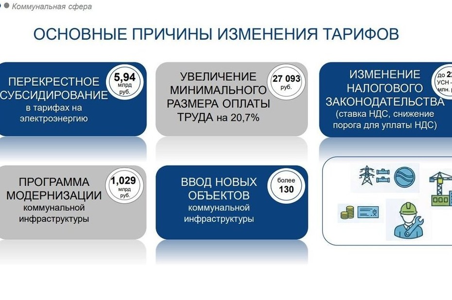 — Основную долю в регулируемых отраслях занимает коммунальный комплекс с оборотом 185 миллиардов рублей, при этом на услуги населению приходится порядка 104 миллиардов, — подчеркнул он. — Во всех регионах страны в соответствии с федеральным законодательством в 2026 году предусмотрены два этапа плановой индексации тарифов на коммунальные услуги.