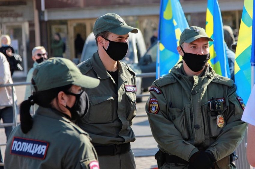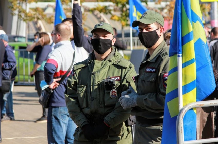 — Проходим, берем кепочки, значки и становимся полукругом, не надо квадратом, — командует процессом координатор митинга. — Разворачиваем плакаты. Так, слева много толпы, давайте несколько человек отойдут правее…