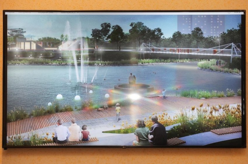 Зона «Озеро» должна стать рекреационно-прогулочной. В озере разместят фонтан, а еще пустят мост, по которому можно будет пройти в следующую зону. Территорию под мостом тоже пообещали благоустроить. С двух сторон озера обустроят смотровые площадки — получится многоуровневое пространство, по которому приятно погулять и отдохнуть в тишине.