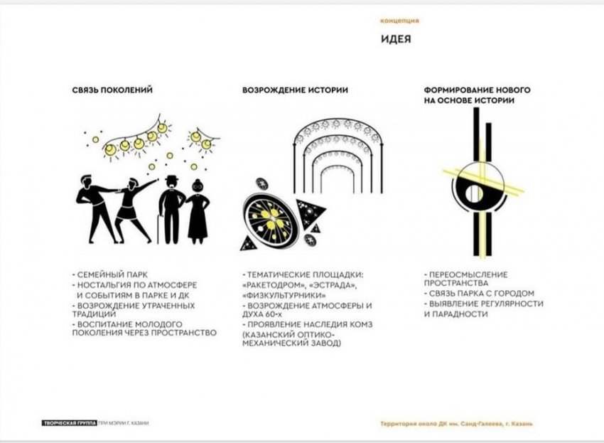 — Площадь перед ДК железнодорожников — центральная часть жилого района Юдино. Здесь проводятся мероприятия и праздники, люди приходят погулять или пересекают ее каждый день. При этом здание дворца культуры в стиле сталинского ампира весьма примечательно, поэтому нам было важно сохранить ностальгический дух этого места. Работая над образом площади, мы связали воедино тему железной дороги — неотъемлемой части жизни поселка, и эстетику советского периода как воплощение оптимизма и устремленности в будущее молодежи и рабочей интеллигенции той поры, — сообщили нам в творческой группе при городской мэрии.
