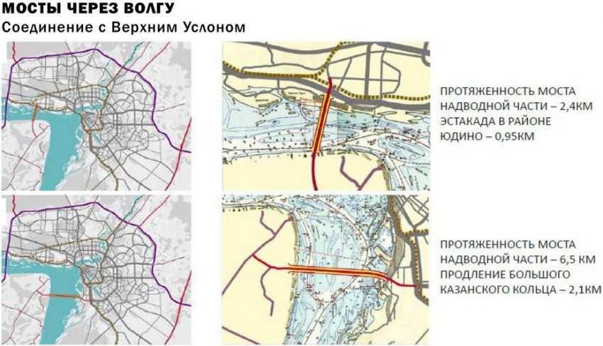 Чтобы преодолеть водные преграды и избежать лишних пересечений магистралей, в Казани планируется построить 73 новых моста и путепровода, в том числе три новых моста через Казанку. Речь о новом мосте в устье реки — в Кировский район, мосте у поселка Торфяной рядом с существующим железнодорожным переходом через реку и мосте, который уже вызвал бурные дискуссии у горожан — от улицы Чистопольской до улицы Новаторов.