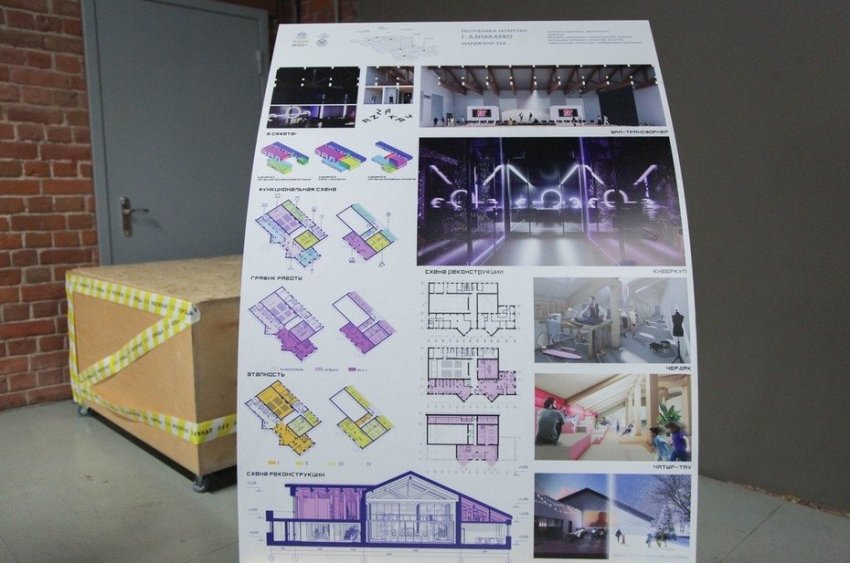 В молодежном центре в Бавлах они придумали смотровую площадку с миниатюрной нефтекачалкой на самом верху — дань истории; предложили обустроить тренажерный зал, мастерские, расшить потолок над залом и увеличить количество мест в нем за счет создания посадочной антресоли, сделать летнюю сцену.