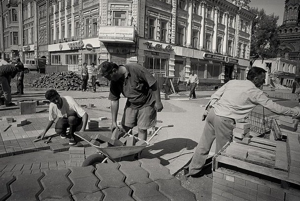 Реконструкция улицы Баумана. Недалеко от «Дома татарской кулинарии». 1997 г. Фото Евгения Канаева ![]()