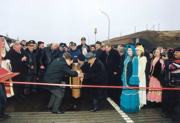 Открытие мостового перехода через Каму, 18 октября 2002 г. Фото shaimiev.tatarstan.ru ![]()