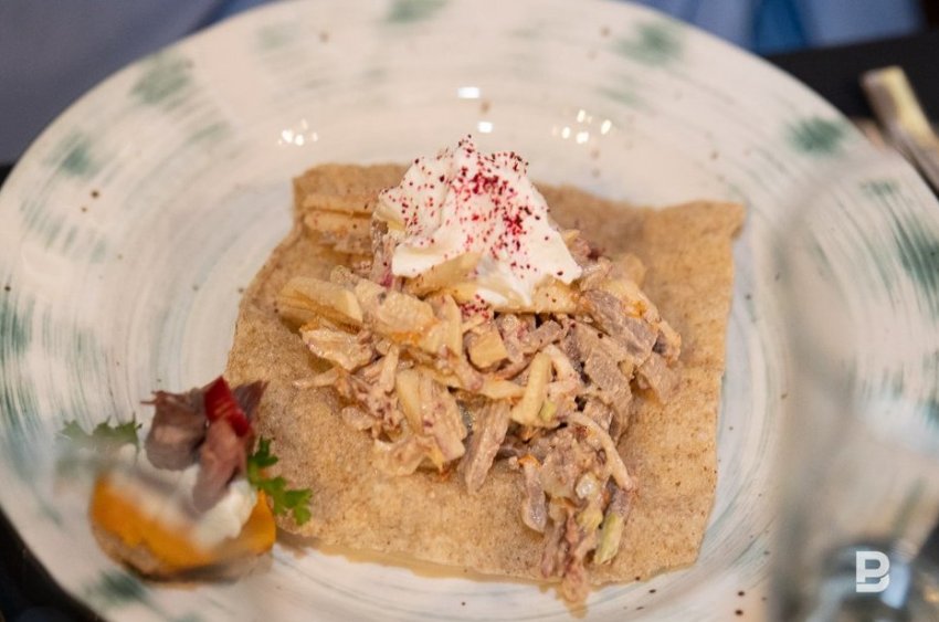 — Я был в Москве и Сочи, встречался с ребятами, которые развивают русскую кухню. Общался с су-шефом ресторана «Ред фокс» в Сочи, этот ресторан попал в топ-50 лучших заведений мира. У них в меню есть крем-суп с лисичками и крапивой. В Москве с Александром Раппопортом (адвокат и ресторатор, владелец более десяти заведений в Москве и Санкт-Петербурге, — прим. ред.) мы говорили о татарской кухне, возможно, чтобы открыть ее там. Он сказал, что о нашей кухне мало знают, даже о вяленом гусе, которым мы гордимся. Хотя иногда на гастрономических конкурсах татарский вяленый гусь обыгрывает испанский хамон. Но в меню своего ресторана «Воронеж» Раппопорт добавил гуся, как карпаччо из гуся. Он не написал «вяленый татарский гусь, — рассказал Зуфар Гаязов.