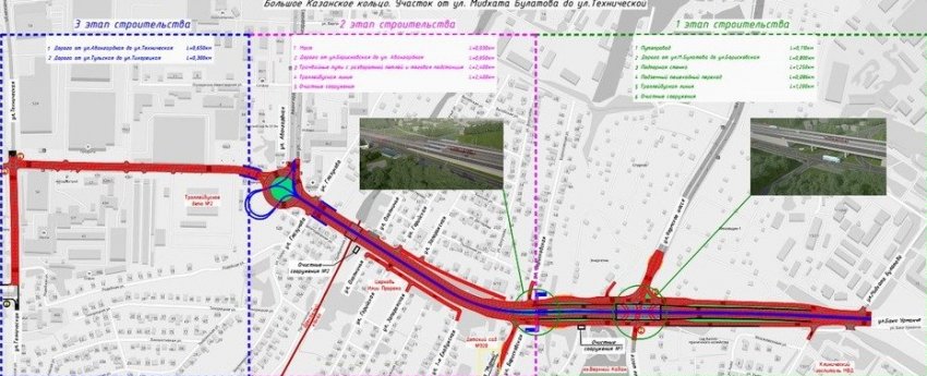 В тендере речь идет об участке от улицы Мидхата Булатова в районе пересечения с улицей Баки Урманче, до улицы Борисковской в районе пересечения с улицей Тульской. Этот отрезок фактически является первым из двух этапов строительства в этой зоне, второй этап строительства должен соединить уже улицу Борисковскую по одноименному жилому массиву до пересечения улицы Технической и улицы Тихорецкой (рядом с гипермаркетом Metro). Трамвайная линия, которая проляжет по этой дороге, свернет на улицу Авангардную.