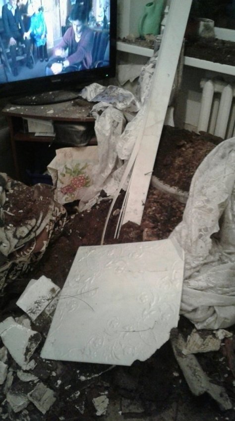 — Мы были в тот момент дома. Еще за пару дней до этого потолок у нас начал трещать и провис. Тут я захожу в комнату, было около половины девятого вечера — и тут сильный треск, бабах! И все рухнуло. Мы, к счастью, не пострадали. До трех ночи разбирали завалы, спасибо соседям — помогли. Наверно, целый грузовик вывезли досок и остатков штукатурки, — рассказывает Ольга.