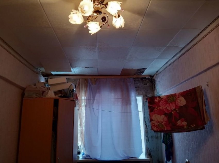 Жители дома в городке Машиностроителей в Ижевске опасаются за свою жизнь после того, как опять рухнул потолок