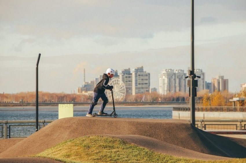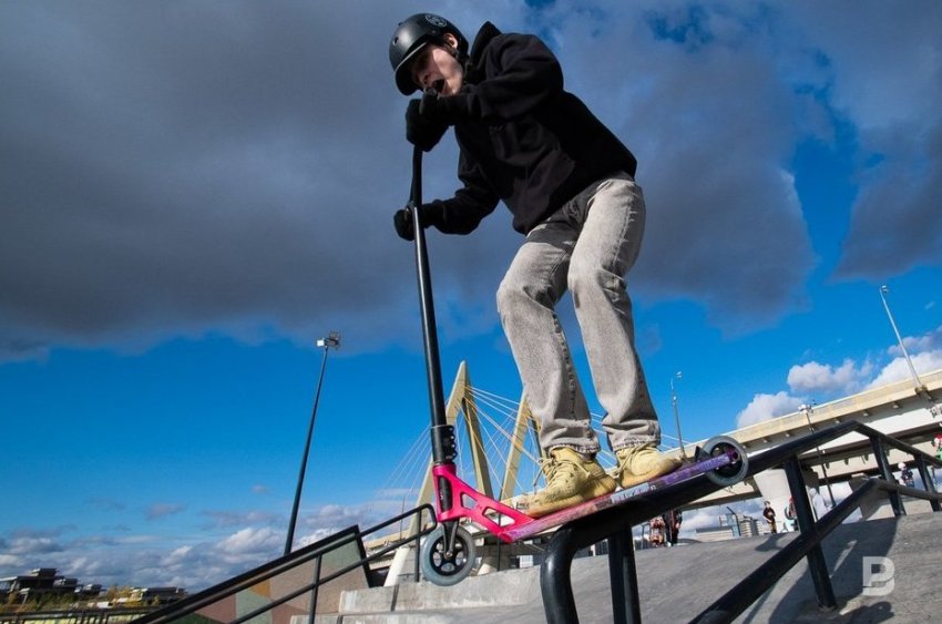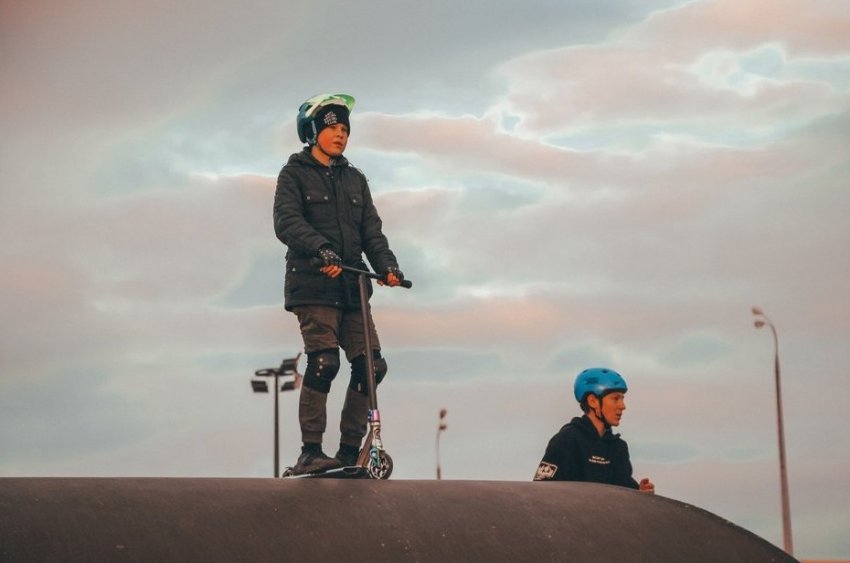 15-летний Эрик Гарипов вот уже 5 лет занимается трюковым самокатом. Он говорит, что теперь в хорошую погоду проводит в «УРАМ» все выходные: