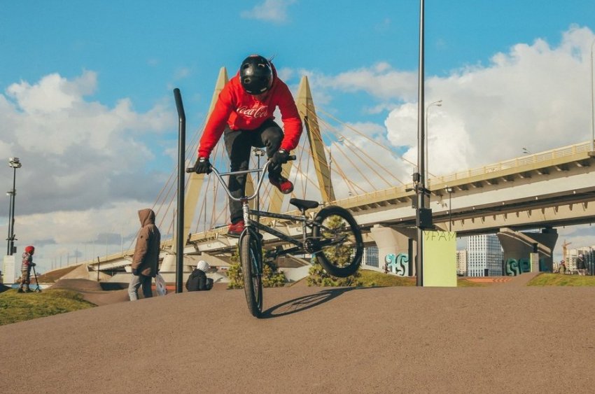 — В первую очередь, конечно, я занимаюсь этим для себя. Но я веду аккаунт в «ТикТоке», у меня несколько тысяч подписчиков, и я частенько выкладываю видео своих трюков. Делаю это прямо здесь же — пока доберусь домой, уже и драйв пройдет. Я не знаю, какая тут скорость интернета в цифрах, но быстрый ролик с мобильника грузится за пару секунд. И стримы тоже не падают. И музыку мы тут слушаем тоже онлайн, в потоке, и ничего не зависает. Сначала боялись, что под мостом мобильная сеть будет проваливаться, но нет, все путем!