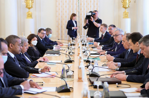 - Министр иностранных дел России Сергей Лавров в Москве встретился с генсеком Организации Объединенных Наций Антониу Гутерришем. Темой для обсуждения стала ситуация на Украине. Ее Лавров считает катализатором для многочисленных проблем, накопившихся в Евро-Атлантическом регионе. Гутерриш в свою очередь рассказал, что ООН крайне заинтересована в создании условий для прекращения огня и мирного урегулирования ситуации на Украине и в минимизации эффекта от нее в других частях мира.