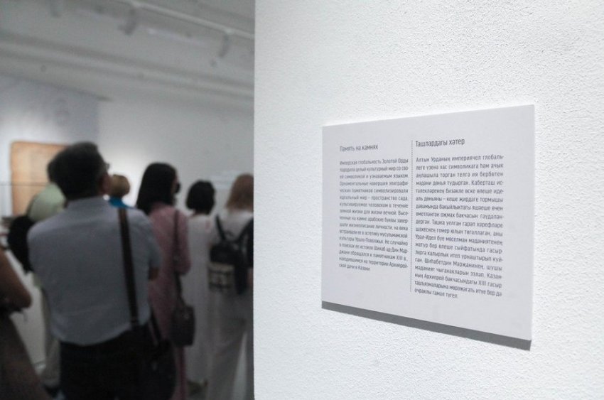 Звездой пресс-показа стал Бустанов, который подробно рассказал журналистам о выставке. Планируется, что у экспозиции появится аудиогид с голосом Альфрида. Впрочем, организаторы уверяют, что на выставке столько надписей, пояснений и текстов, что можно многое узнать и самому. Открывается она проекцией надписей на могилах на белые плиты — их делал при помощи стилуса молодой каллиграф Айзат Мингазов. Говорит, что на каждую надпись уходило до полутора суток, так что потом на лицах людей мерещились арабские буквы. Эти экспонаты связаны с книгой Шигабутдина Марджани «Мустафад аль-ахбар фи ахваль Казан ва Булгар» («Кладезь сведений о делах Казани и Булгара»), в которой он через камни, найденные на территории Архиерейской дачи, в буквальном смысле пытается нащупать свои корни.