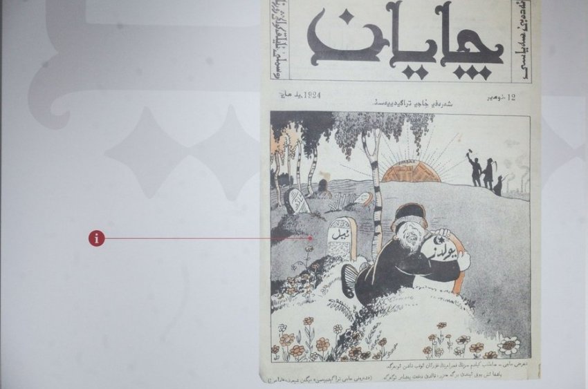 В этой ситуации многие артефакты прошлого меняют смысл. Карикатура из журнала «Чаян» показывает старика, который обнимает могильные плиты с арабскими надписями, в то время как на заднем фоне встает солнце новой жизни. Сейчас эта картинка смотрится иначе — это уже не восход, а закат.