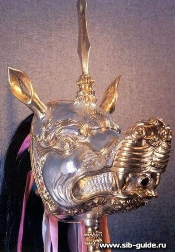 На знаменах рода Ашины изображалась вышитая золотом волчья голова. Гвардия кагана называлась Бури — волки. Смерть в бою считалась лучшей смертью для мужчины. Излюбленным оружием тюрков были луки со стрелами, копья, сабли, палаши.