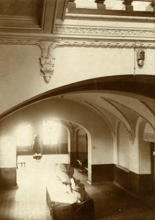 Также еще предстоит много работ по реставрации и воссозданию интерьеров на следующем этапе. Богатые своим убранством актовый зал, бывший кабинет заведующего школой, потолок над главной лестницей в сильнейших протечках, в результате чего утрачен и сильно пострадал лепной декор. Планируется восстановить кессонный потолок актового зала, световой фонарь с двусветным пространством в холле, выполнить реставрацию лепного декора во всех помещениях, реставрацию деревянных дверей, метлахской плитки, мозаичного бетона ступеней лестницы.