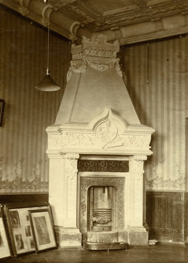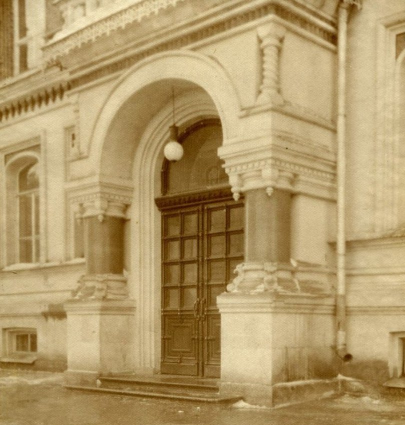 На главном фасаде была демонтирована поздняя надстройка третьего этажа и выполнено наклонное остекление. Для того, чтобы правильно определить угол наклона, были исследованы архивные фотографии и выполнено натурное исследование — внутри помещения сохранился потолочный профиль, по нему было определено место примыкания верха наклонной стены и рассчитан угол наклона. Современная конструкция витражного остекления представляет собой стеклопакет в алюминиевом профиле, но с соблюдением исторических габаритов и расстекловки. Здесь еще предстоит восстановить ажурное ограждение в виде растительного орнамента и декоративные металлические панели между витражами.