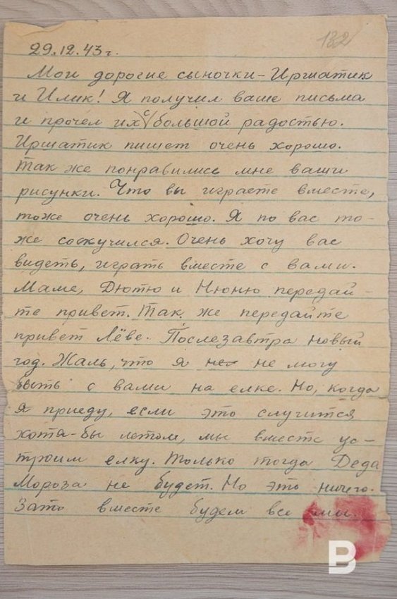 «… Враг обязательно будет разбит. Недалек тот час, когда я вернусь с победой над самым коварным и озверелым врагом всего человечества. Я жив и здоров. Жду писем от вас. Прошу Валерика и Розочку в холодные дни не пускать гулять на улицу. Крепко целую».