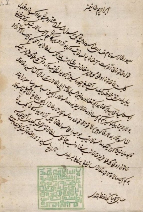 - Этим вышеозначенным выдан сей ярлык с нишаном. Писано даты в восемьсот ... [год], в начале месяца рамазан.