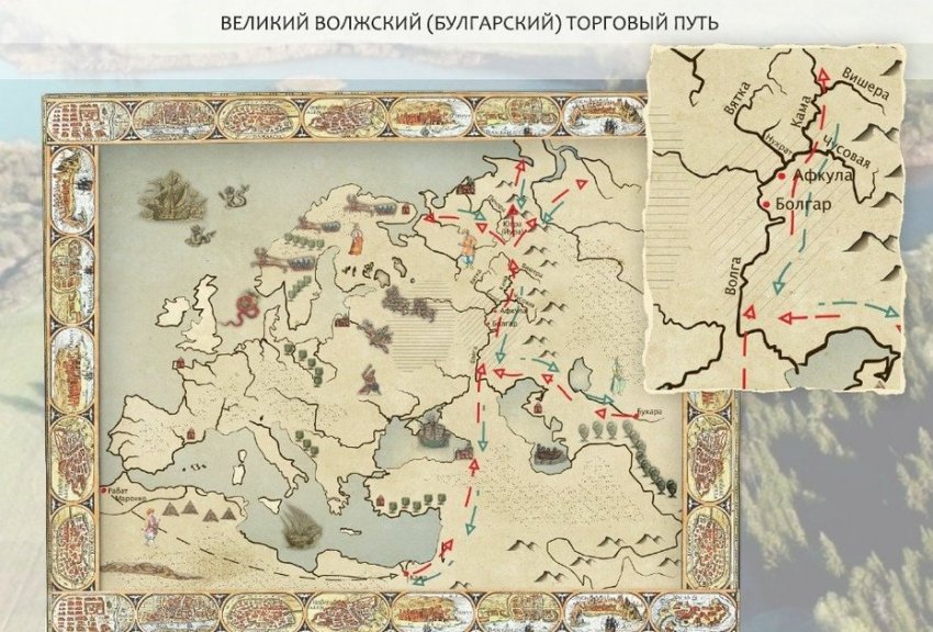 Одной из основных точек Волжского торгового пути был Великий Болгар, а конечным пунктом для булгарских купцов была Афкула, располагавшаяся на территории нынешнего Пермского края. В этом месте много лет ведутся археологические раскопки. И, кстати, в рамках исследований был найден мечетный светильник, что позволило ученым сделать вывод о том, что здесь находилась самая северная мечеть того времени.