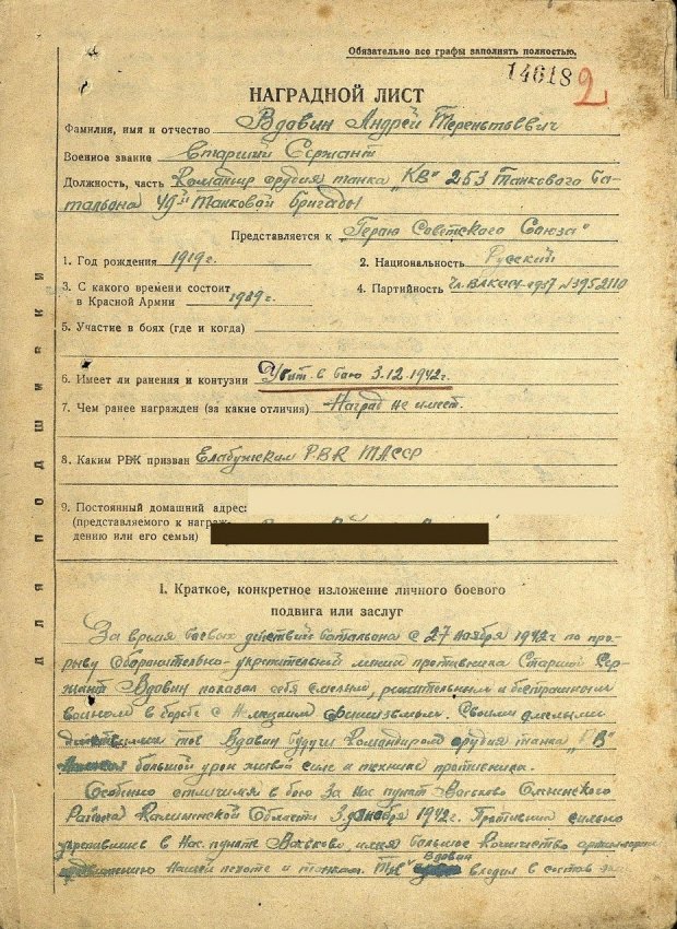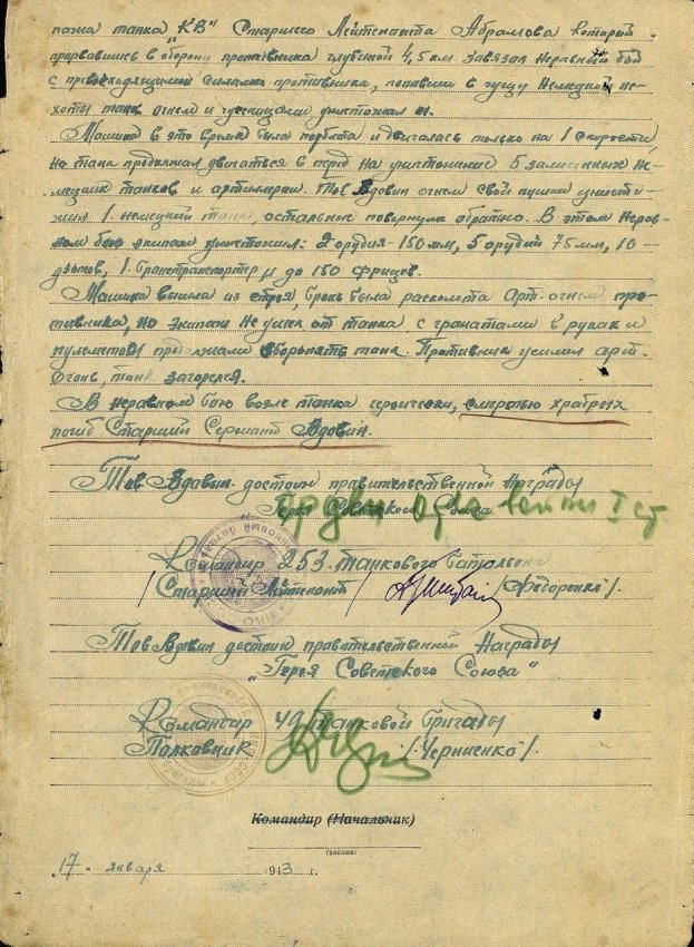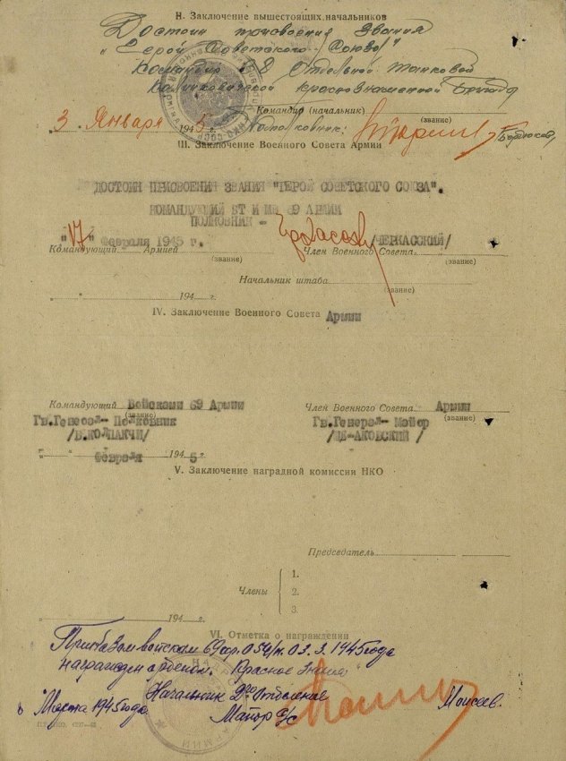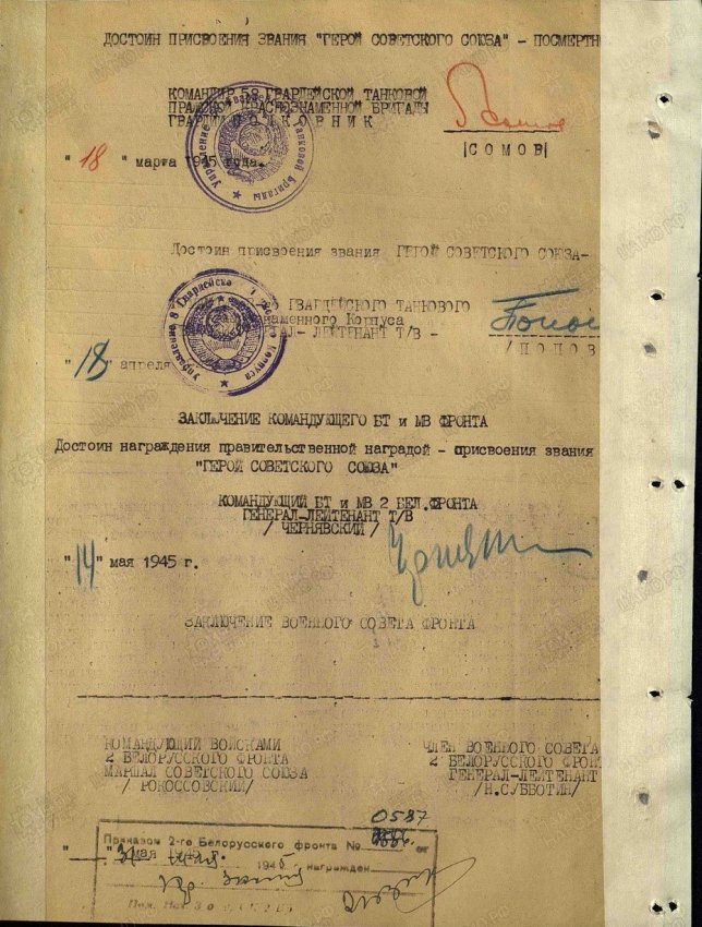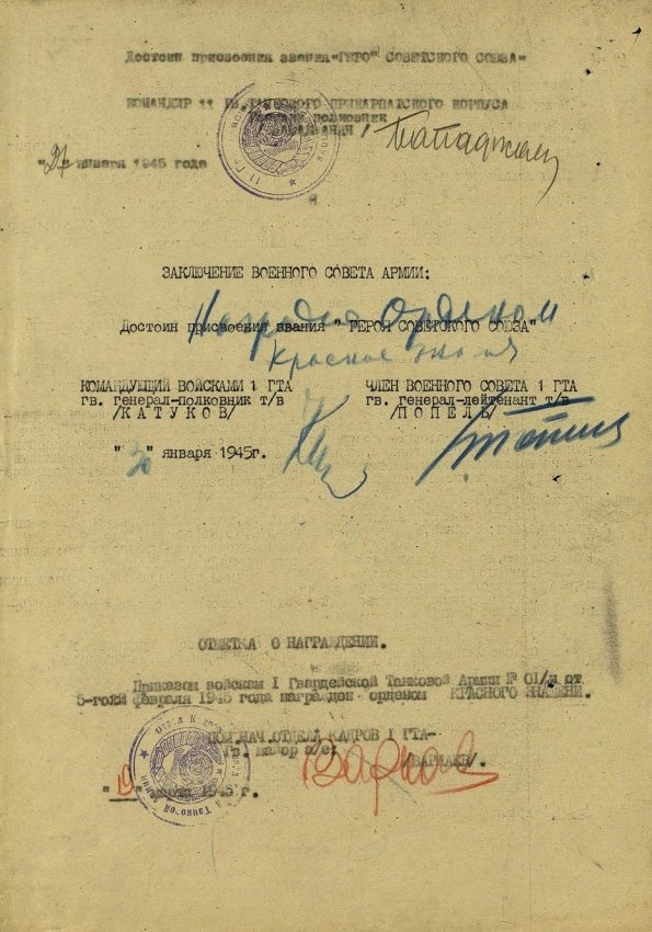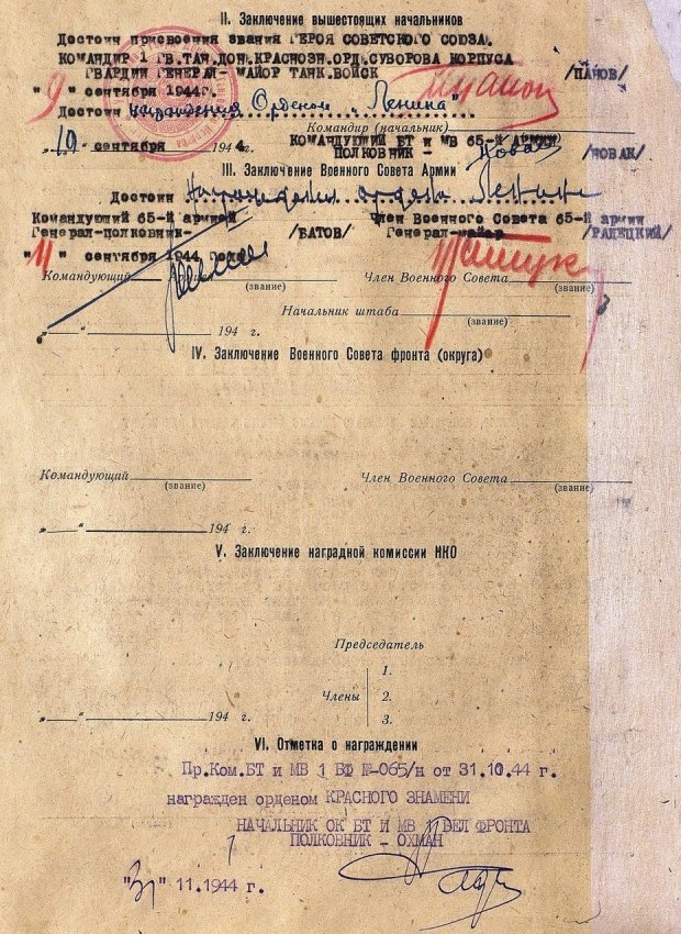 «Представляется к присвоению звания Героя Советского Союза посмертно.