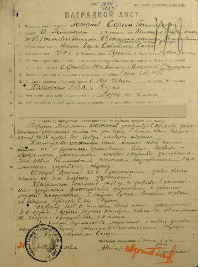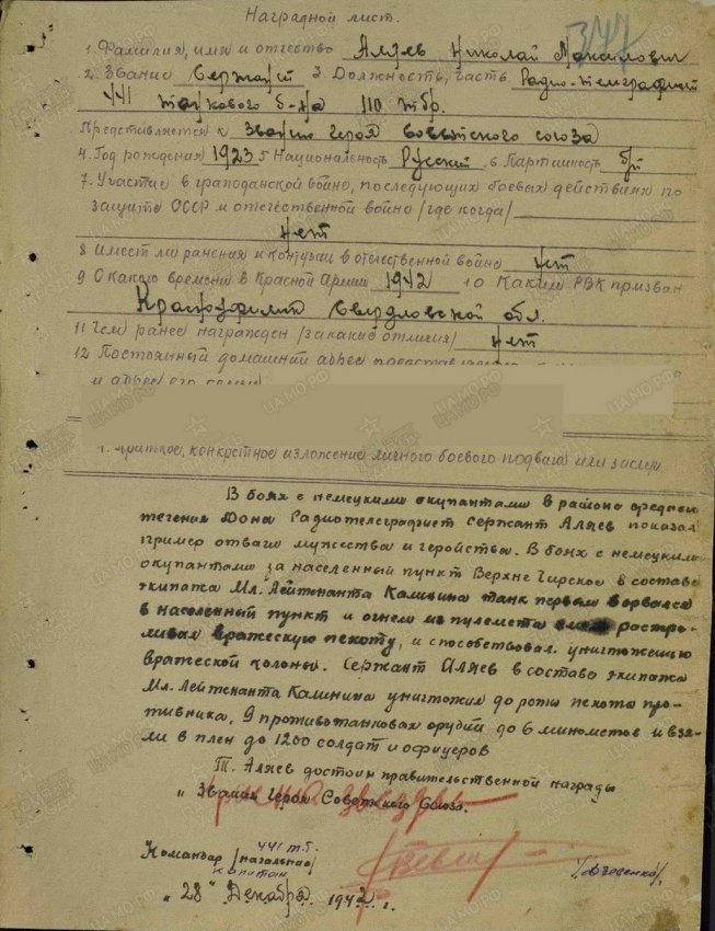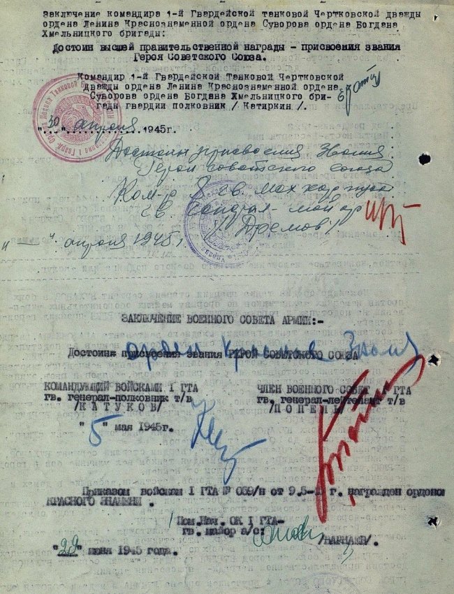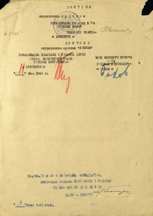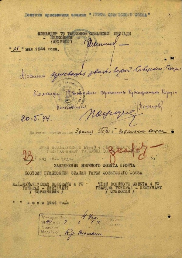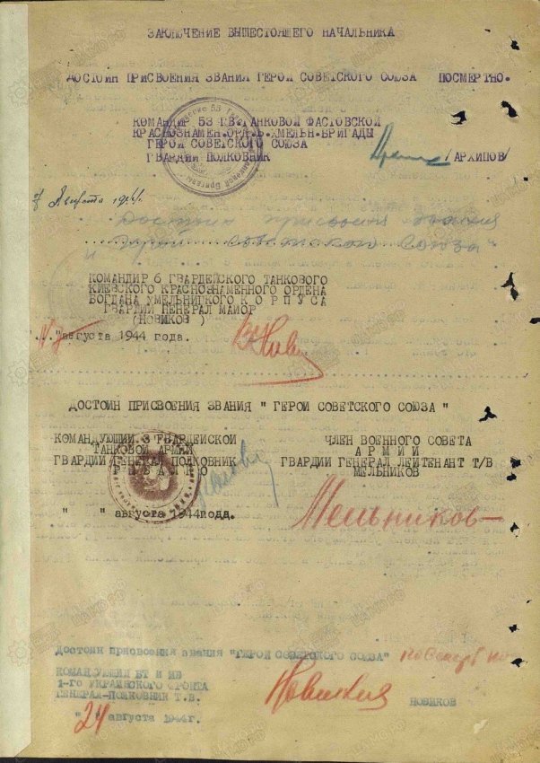 «Представляется к присвоению звания Героя Советского Союза посмертно.