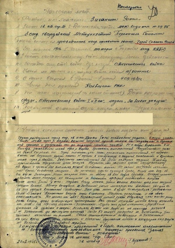 А в подтверждение того, что фильм основан на реальных событиях (особенно бой на мосту), приведу текст наградного листа нашего земляка, уроженца с. Большое Русаково Кайбицкого района Рахимуллы Зиганшина: