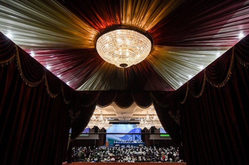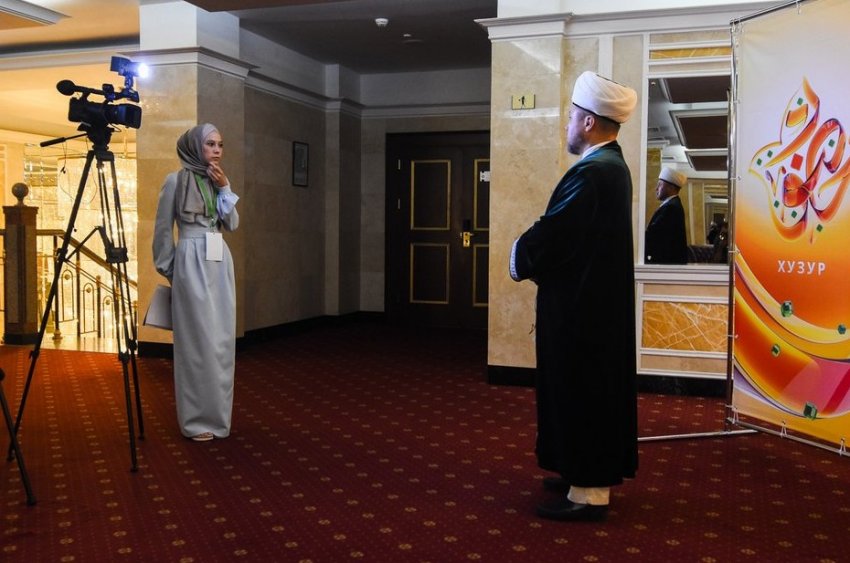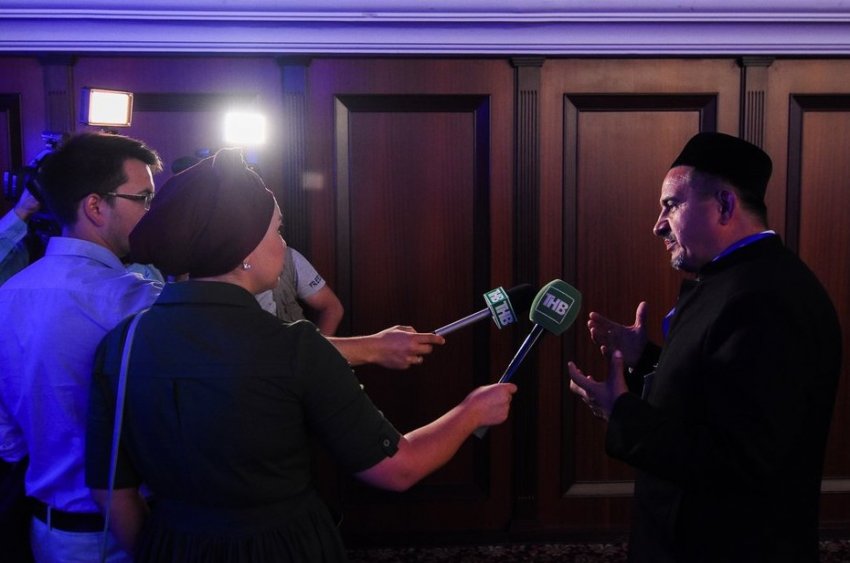 На второй день работы форум татарских имамов сменил площадку и переехал из Академии наук РТ в «Корстон». Здесь участников встретили выставкой народных промыслов и книг. До начала торжественного открытия форума муфтий Татарстана Камиль Самигуллин рассказал «Реальному времени», чем будет отличаться эта встреча религиозных деятелей от предыдущих:
