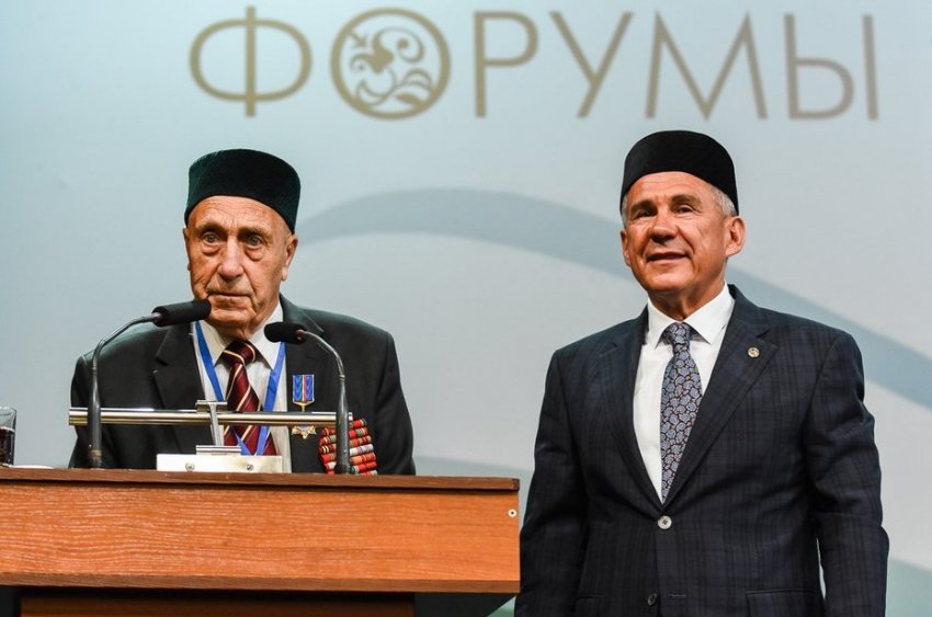 После на сцену поднялся 93-летний ветеран Великой Отечественной войны, почетный житель Калининграда Хаким Бегтеев. Фронтовик рассказал, что прожил в этом городе 74 года, и посетовал, что до 90-х годов на его территории не было мечетей, только недавно они появились, и выступающий пригласил всех желающих в гости посмотреть на них. Ветерану вручили орден «За заслуги перед Республикой Татарстан».