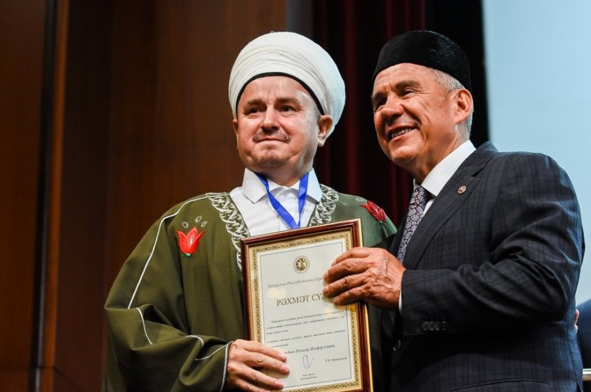 После церемонии награждения других почетных участников форума слово взял Камиль хазрат Самигуллин. Муфтий Татарстана напомнил свой разговор с российским президентом во время его недавнего визита в республику: