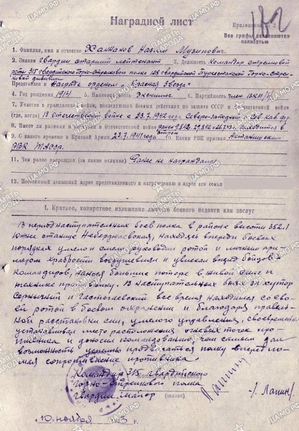В данном случае речь идет о счете на имя гвардии старшего лейтенанта Назми Музиповича Ханнанова, 1914 года рождения, уроженца д. Мастеево Актанышского района Татарстана.