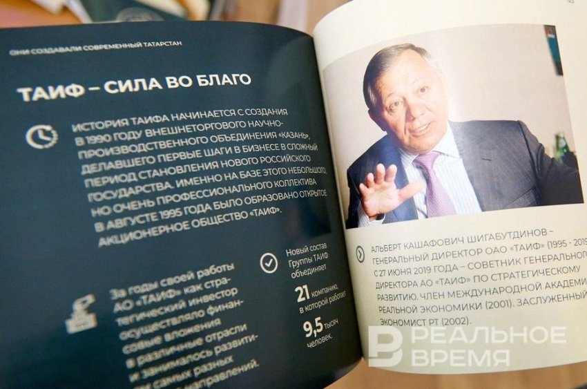 В числе специальных приглашенных гостей — президент Академии наук РТ Рифкат Минниханов, руководитель АИР Талия Минуллина, вице-премьер, министр промышленности и торговли Татарстана Олег Коробченко, депутаты разных уровней. В президиуме — одни из главных героев издания: пятеро татарстанских Героев Социалистического Труда, председатель совета Союза «Торгово-промышленная палата РТ» — генеральный директор «Татнефтехиминвест-холдинга» Рафинат Яруллин и председатель Союза ТПП РТ Шамиль Агеев. Он-то и является инициатором появления на свет уникального издания.