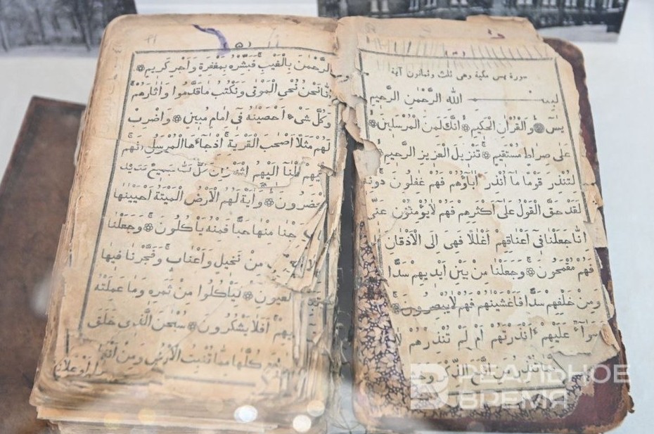 Также из любопытного — Коран, набранный шрифтом Брайля, серия почтовых марок, книга, пережившая ленинградскую блокаду, рукописный Коран из Тамбовской области.
