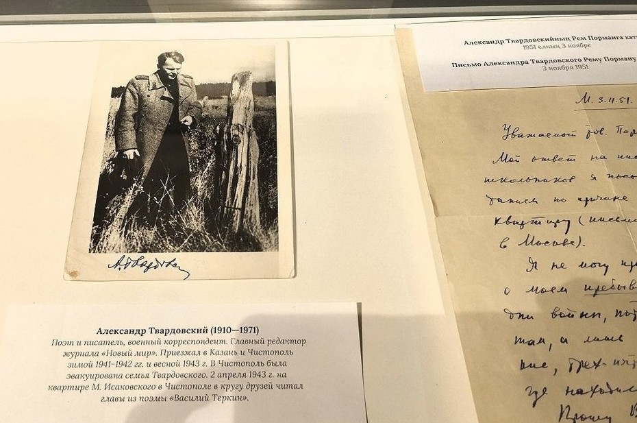 Отдельным блоком на выставке идет Чистополь, который строит музейную идентичность на теме эвакуации, в городе даже открывают Дом Живаго. При этом, отмечает директор филиала Нацмузея Айдар Шайхин, такие писатели, как Пастернак, Федин, Исаковский, Твардовский и другие, регулярно приезжали в Казань.