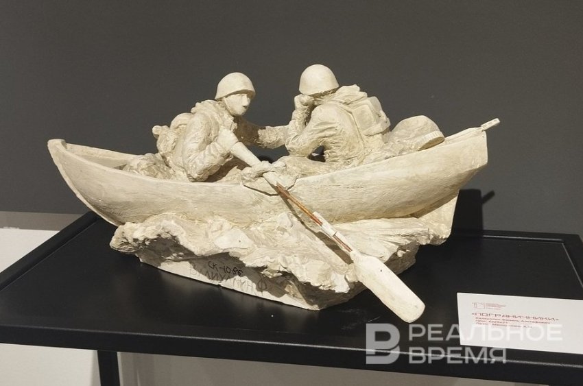 Следующая часть — «Подвиг солдата». Здесь уже есть и скульптуры, это «Пограничники» Фаниля Валиуллина, ученика Асии Миннуллиной. Некоторые художники берут локальные темы, в частности, Людмила Салихова вдохновилась историей о лагере военнопленных на Каме.