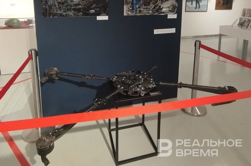 Внезапно проявляется в экспозиции тема специальной военной операции — здесь размещены трофейные образцы вооружения, фотокадры. Центральное место в этом блоке занимает дрон «Баба-яга», уничтоженный ВС РФ.