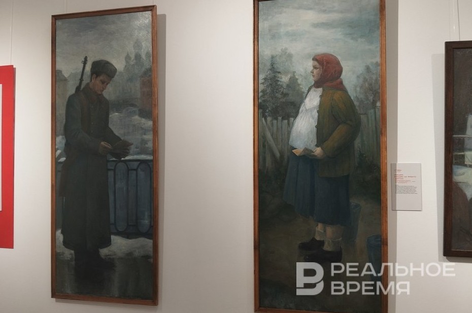 Третий блок — «Блокада». В целом посетитель может идти по линии, хотя, конечно, логику в этом путешествии по рефлексии по прошлому порой трудно с ходу обсудить. В частности, здесь нам встретятся привезенные из музея личные вещи и первые издания Мусы Джалиля. Здесь же разместились фронтовые письма, написанные разной графикой. Картины и документальные материалы, к примеру газетные вырезки, хорошо работают на контрасте. Запоминается, конечно, фотография писателей и журналистов, участвовавших в Великой Отечественной войне. Помимо этого, училища представили раритеты из натюрмортного фонда — а это и керосиновые лампы, и телефоны, и одежда, и даже мебель.