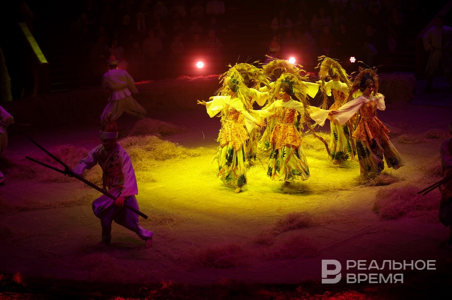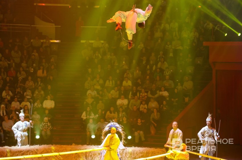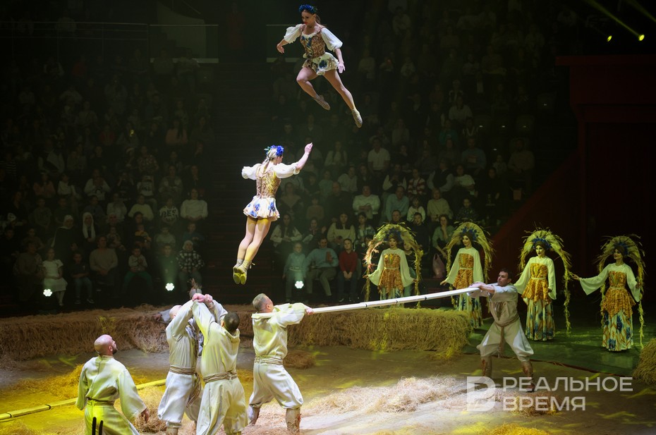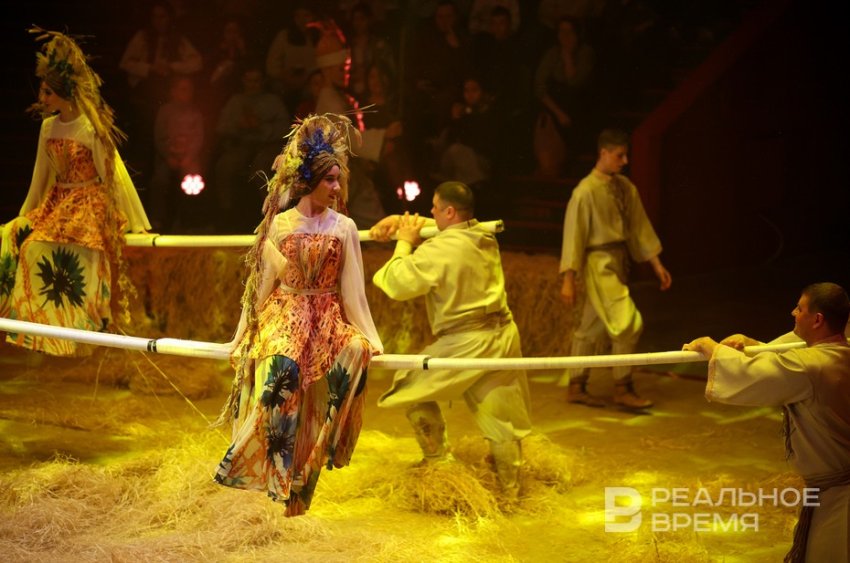 Далее мы узнаем, что братья выращивают пшеницу. И на арене, выложенной сеном, уже прыгают акробаты на тройной русской палке под руководством Ильи Тюфяева, артисты неоднократно приезжали в Казань, например, в прошлом декабре на новогодний «Лабиринт».
