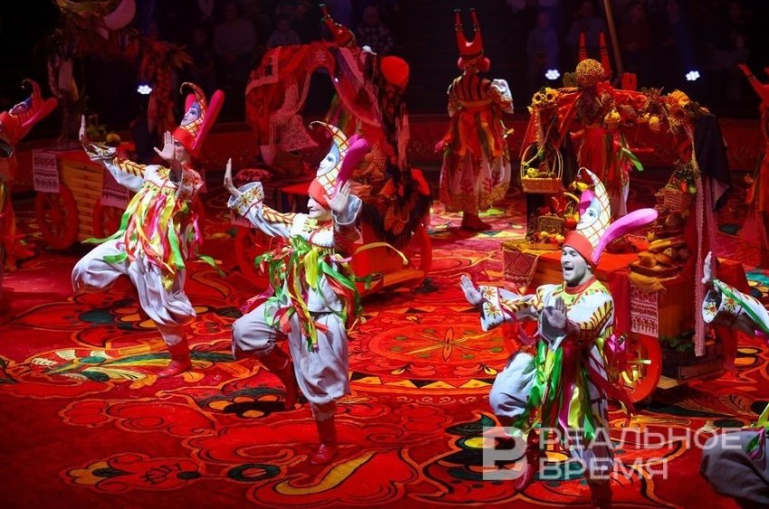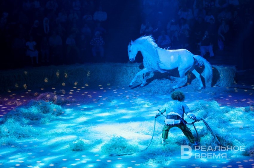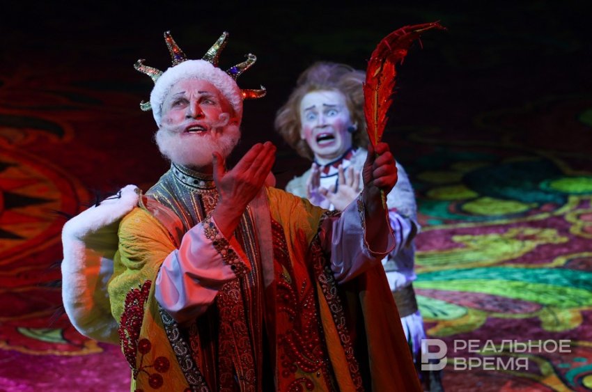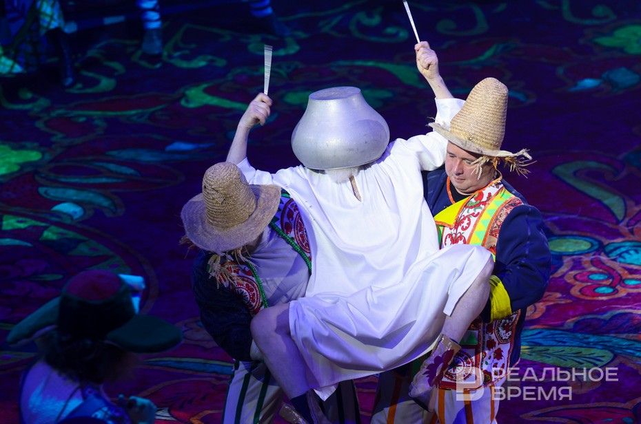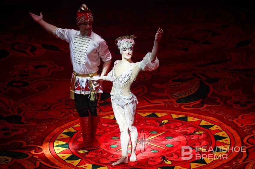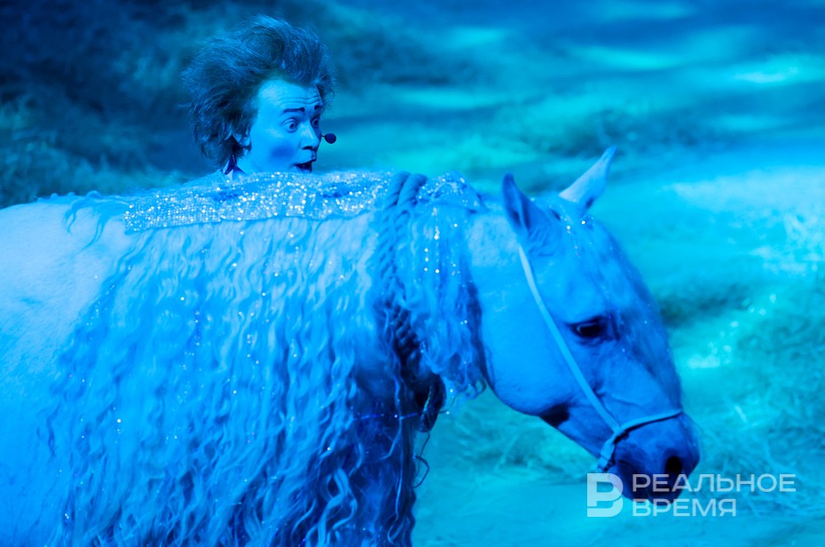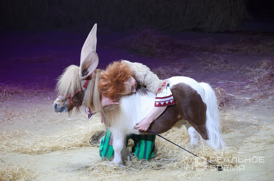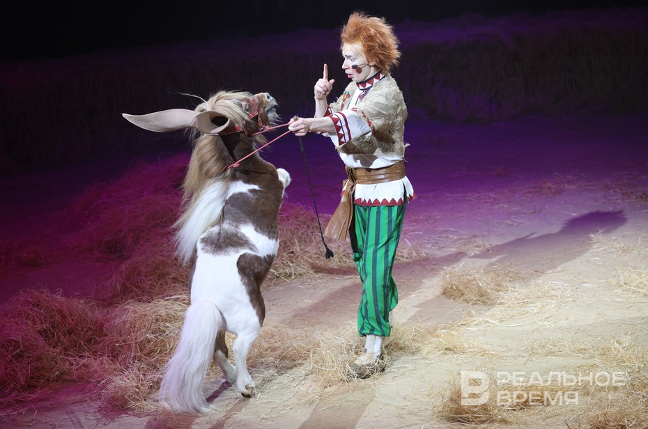 «Конек-Горбунок» — постановка, подготовленная в Москве в 2023 году, причем делала ее та же команда, которая в этом году подготовила в Казани спектакль «Мирас». Это главный режиссер Евгений Шевцов, главный балетмейстер Ольга Полтарак, а также постановщик клоунады Андрей Шарнин. Нужно понимать, что в Казань сказка не привезена, а перенесена.