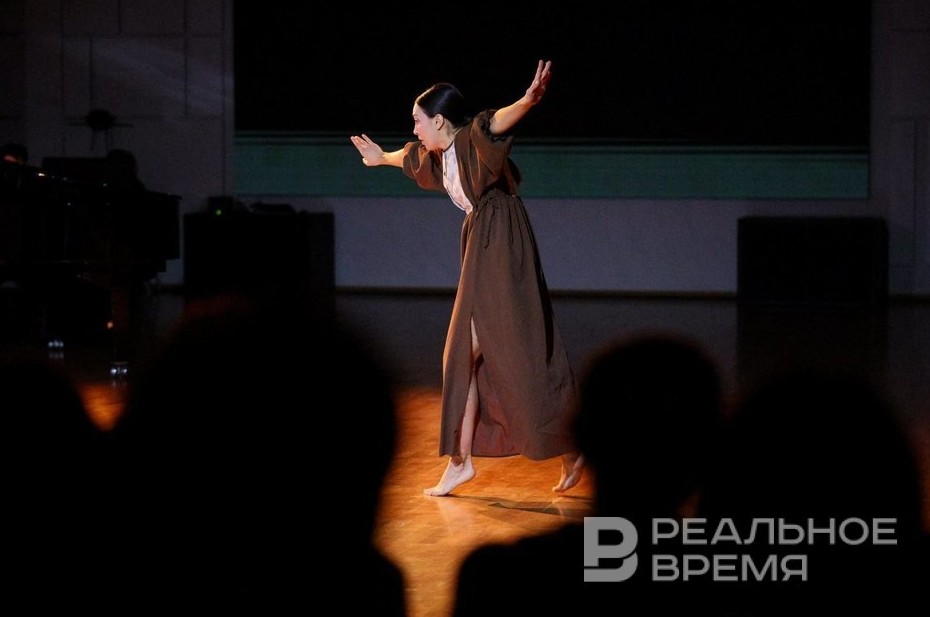 Начинается спектакль с медленного выхода героини, которая не спеша льет из кумгана воду в таз — кажется, это оммаж миниатюрам из «Цвета граната» Параджанова. Хореография спектакля не зациклена на одном методе: здесь может сочетаться народный танец и ломаные движения современности.