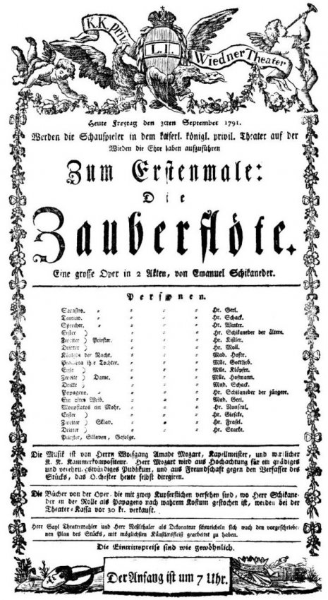 30 сентября 1791 года, 230 лет назад, в Вене состоялась премьера оперы «Волшебная флейта» — последнего произведения Вольфганга Амадея Моцарта. По сюжету дочь царицы ночи похитил волшебник Зарастро. Царица посылает принца Тамино спасти девушку и дает ему помощников и волшебный атрибут — флейту. Сюжет «Волшебной флейты» связан с мифологией Древнего Египта, воссозданной по древнегреческим источникам. Первая постановка в России состоялась в 1797 году силами немецкой труппы. В 2006 году «Волшебную флейту» поставили в Татарском академическом театре оперы и балета им. Джалиля. Музыкальным руководителем был Мика Айшенхольц (Швеция), режиссером-постановщиком, сценографом — Андре Ботта (ЮАР). Роль царицы ночи исполнила Альбина Шагимуратова.