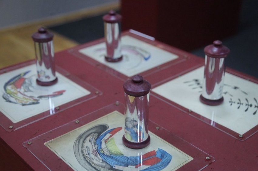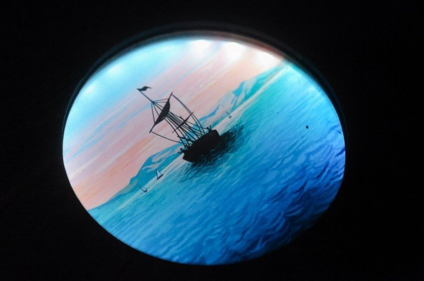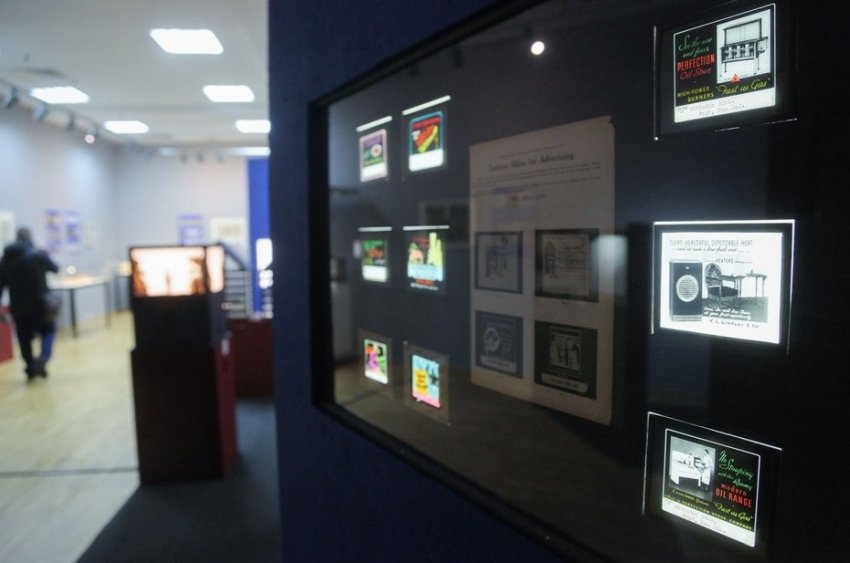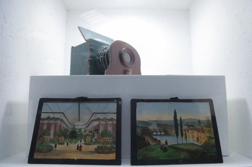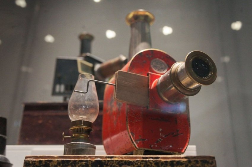 Оригинальные предметы XIX—XX веков, конечно же, спрятаны за витринами. Можно только полюбоваться линзами с нанесенными на них рисунками, первыми «волшебными фонарями», которые сначала изготавливались из дерева и были настоящими произведениями искусства. Потом появились более мощные стереоскопы для домашних кинозалов или аудиторий. Кстати, коммерция всегда шла в ногу с наукой и забавами. В аннотациях и ценниках указывалось — «идеальный волшебный фонарь». Это значит, что к нему прилагался солидный набор линз или пластина с их максимальным количеством — шесть или восемь.
