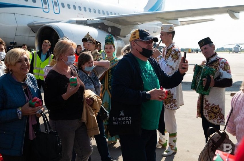 В столицу Татарстана накануне прибыл первый субсидированный чартерный рейс Москва — Казань. В аэропорту 180 прилетевших туристов встречали наряженные в красивую национальную одежду девушки и волонтеры с чак-чаком. В течение месяца в Казань должны прибыть пять таких чартерных рейсов. С их помощью в Татарстан прибудет около тысячи туристов. Не исключено, что полеты будут и в октябре, но точных данных пока нет.