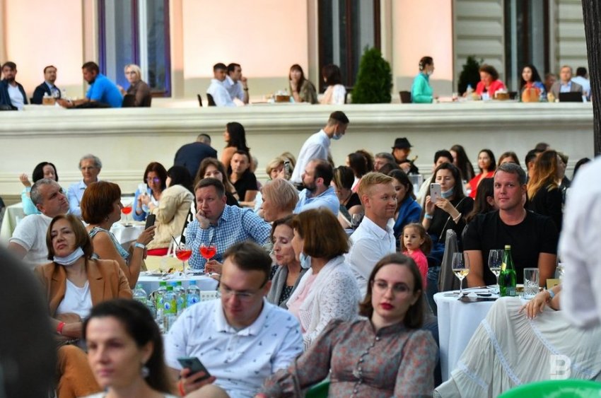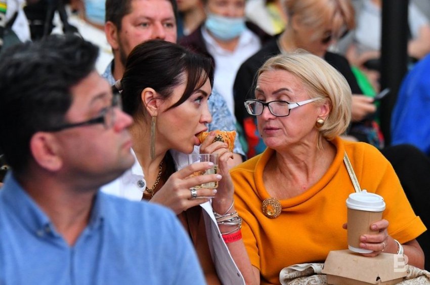 Открывается вечер с речи министра культуры РТ Ирады Аюповой, которая говорит: «Здорово, что мы сегодня возвращаемся на нашу излюбленную площадку». Минкульт РТ выделил на фестиваль около 2 млн рублей — на сцену, логистику, бэклайн.