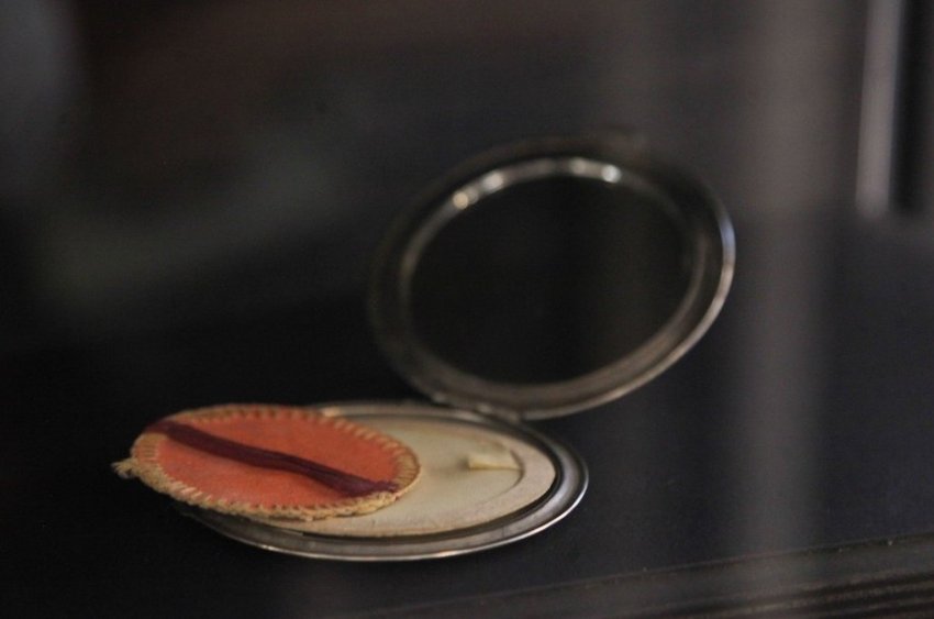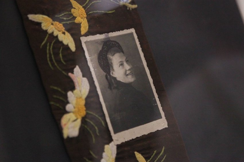 Привлекает внимание и вышивка, которую сделала с фотографии девочки-школьницы мать, она держала ее у себя над кроватью, как и многие жены изменников родины, жившие (или отбывавшие наказание, только за то, что были женами) в «Алжире» — Акмолинском лагере жен изменников Родины, созданном в 1937 году в Казахстане. Супруга ее расстреляли — он остался на расстрельном полигоне на Коммунарке, женщине удалось выжить. Возможно, благодаря этой вышивке, единственной ниточке, связывавшей ее с «той жизнью». Этот экспонат передала в музей дочь заключенной — с матерью ей удалось воссоединиться. К слову, все предметы, по свидетельству музейщиков, принадлежали относительно счастливым людям — тем, кому удалось пережить репрессии и вернуться к близким.