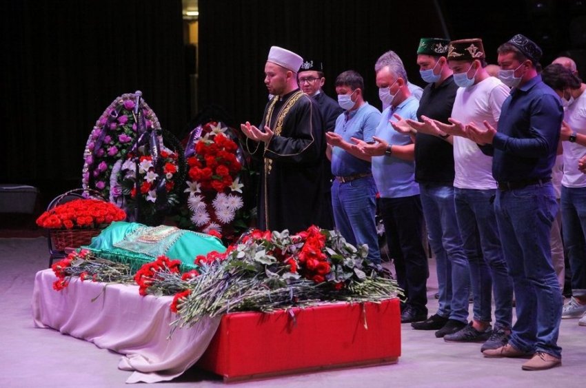 Пришли два бывших министра культуры — Зиля Валеева и Айрат Сибагатуллин, возложили цветы и долго о чем-то беседовали с супругой покойного. Уже в конце панихиды появилась нынешний министр культуры Ирада Аюпова, которая молча оставила у ног Шарифуллина букет алых роз.