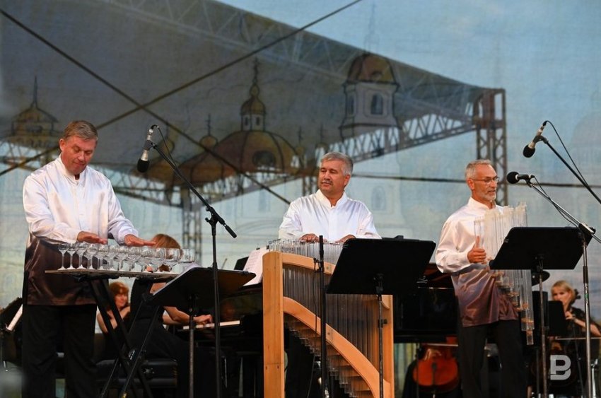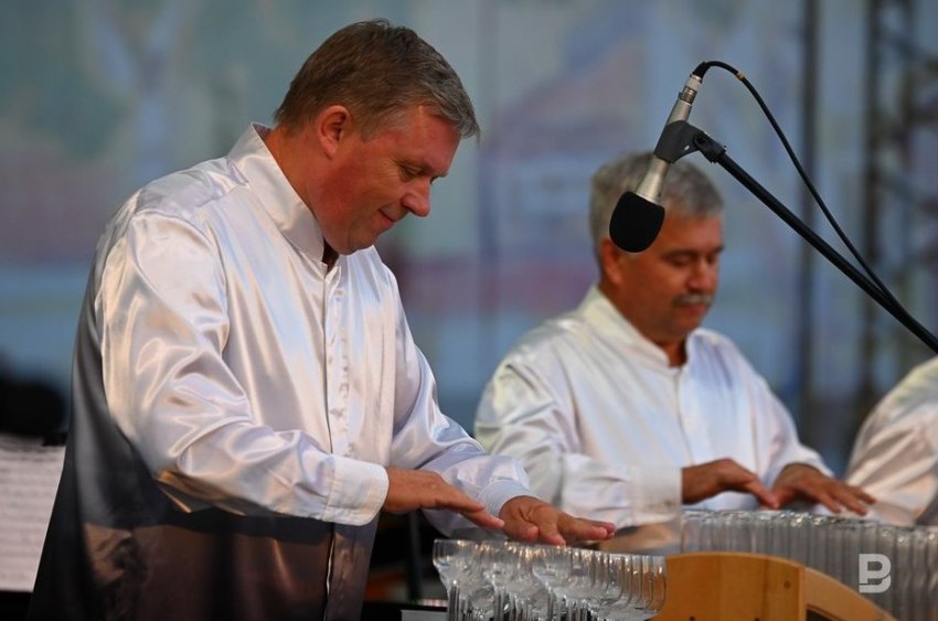 — Фестиваль просто потрясающий, особенно если учесть, что проходит он в такие сложные времена. Нас пригласил Игорь Лерман, у которого на «Рождественском фестивале» в Набережных Челнах мы выступаем практически ежегодно. Если пан-флейту мы сделали сами, то остальные инструменты нам изготавливают в Германии на заказ. Они сделаны в основном из качественного немецкого стекла с небольшим добавлением хрусталя. Инструменты поначалу бились очень часто, пока мы не приноровились к ним — как снимать, расставлять. Настраивать стаканчики не нужно — они уже готовы к игре. Заметьте, только два бокала с водой, остальные — без, — раскрыл секреты мастер.