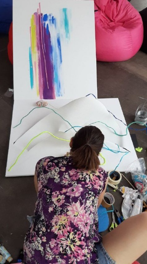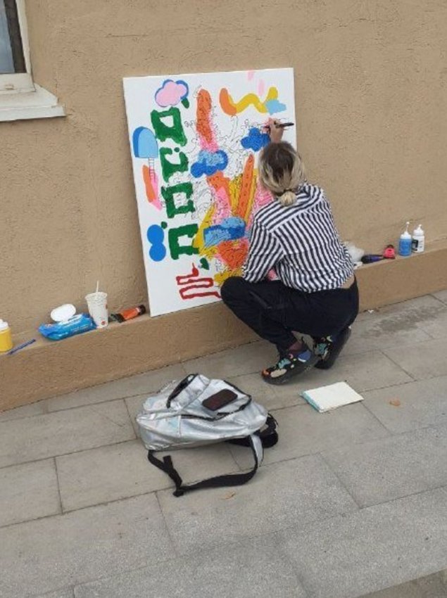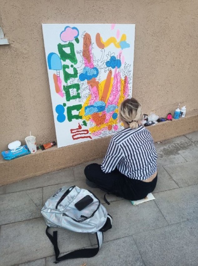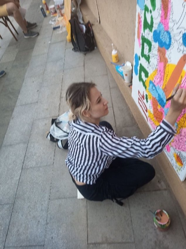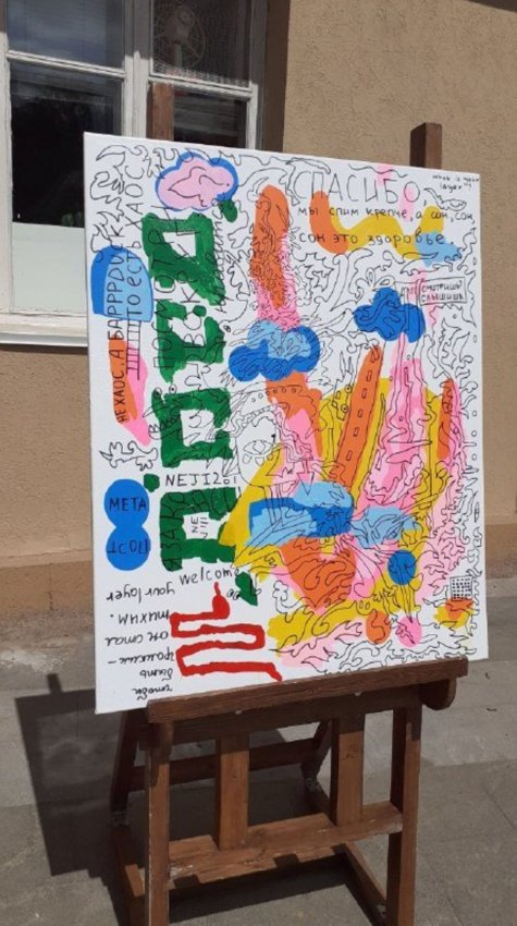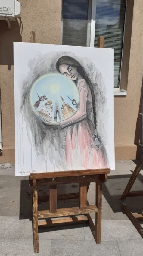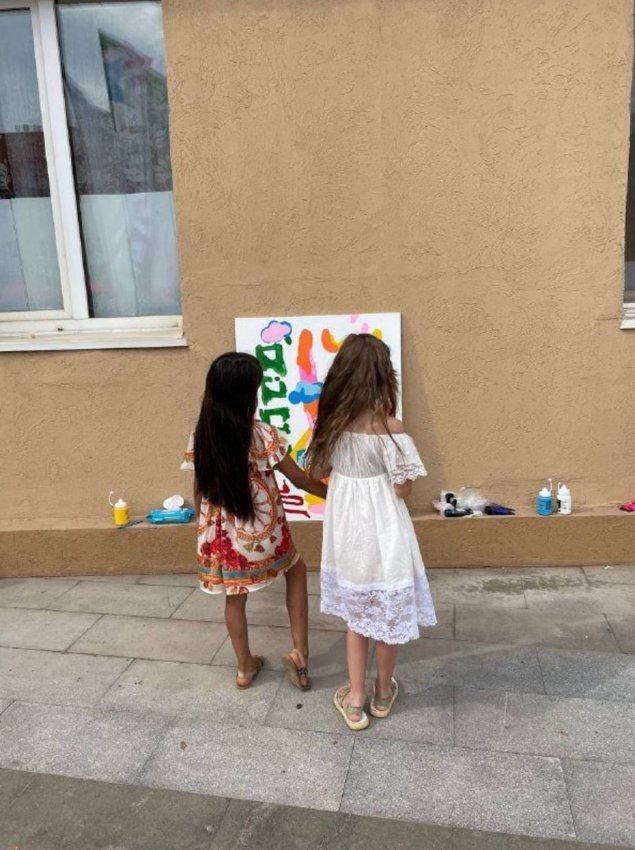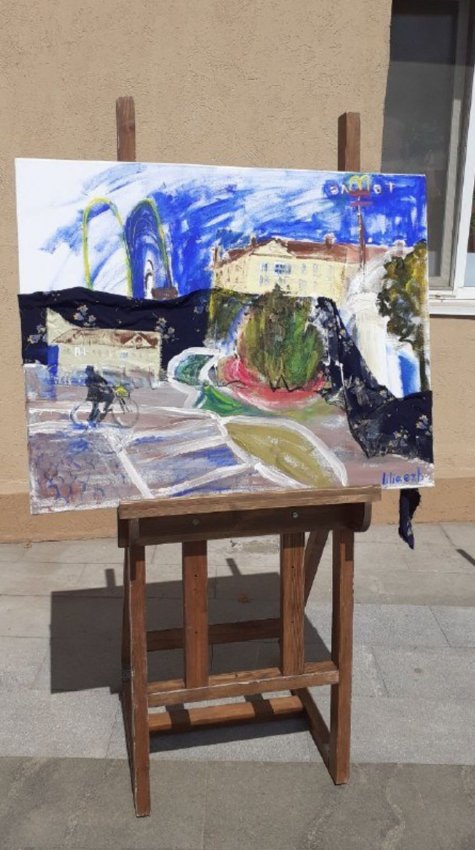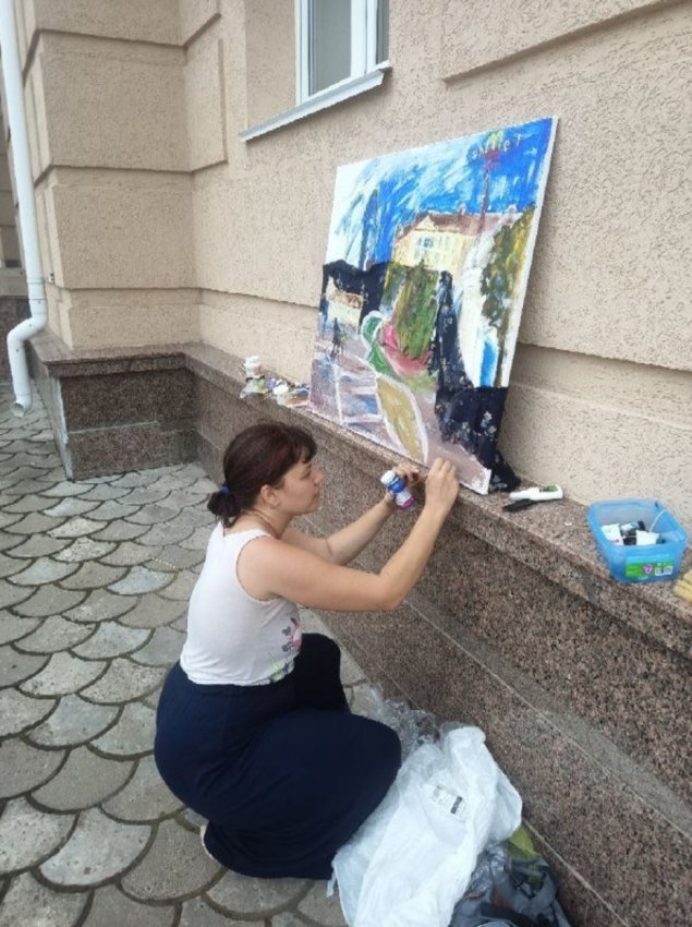 — Мы оказались в городе, который окунул нас вместе с холстами в проливной дождь, солнце, безумно, до боли смешные, нелепые ситуации, удивительное добродушие людей, и наша первоначальная задумка растворилась сама по себе: мы отразили впечатление вчерашнего дня, города и этих покоривших меня возвышенностей — словно японских гор, когда впервые увидела. Стоишь в городе, а видишь горы, — объяснила Алия.