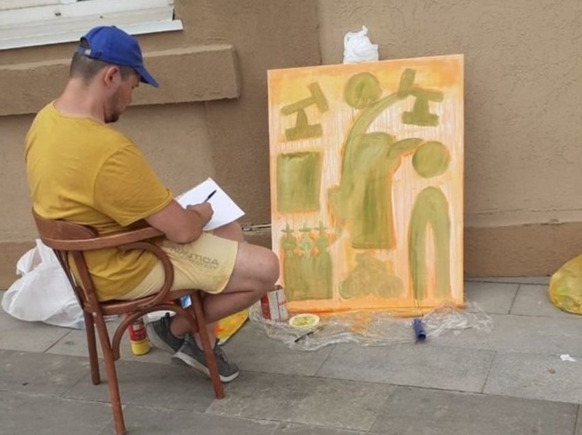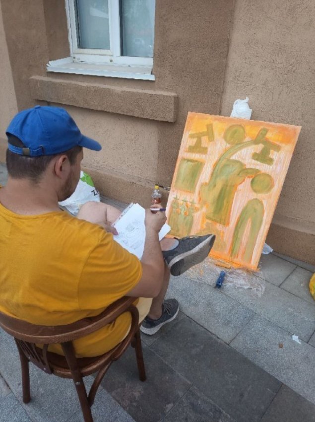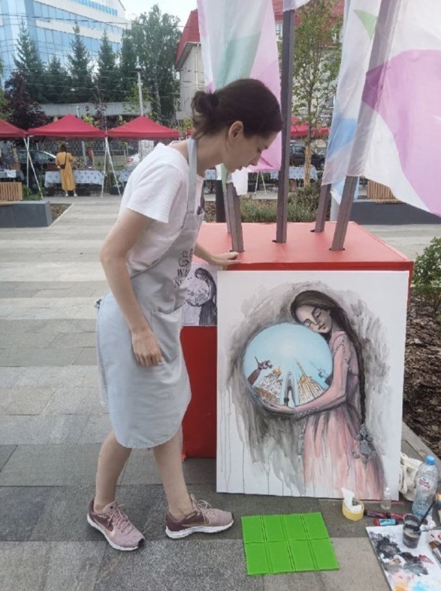 Потенциал есть у любого города. Но хотелось рефлексировать. А потому я решил экспромтом собрать художников — из Альметьевска, Казани и Челнов. Выдать им холсты 80 на 100, с помощью проекта «Сказки о золотых яблоках» провести экскурсию. А потом они рисовали до вечера картину, сами выбирали образы, локацию, спасаясь от дождя и ветра. Кстати, большая благодарность местной художественной галерее за помощь с мольбертами.